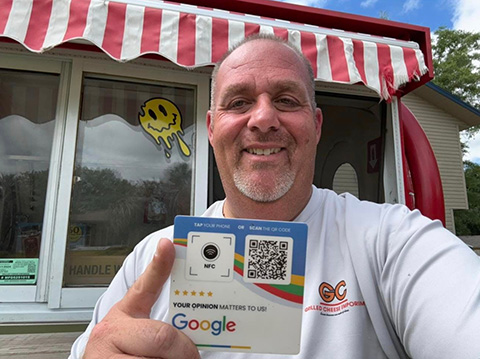 Boost your reviews on the go with a business card sized review device that customers can tap or scan. Fits perfectly in your wallet or purse for easy access on the go.